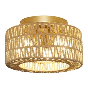 This woven drum flush mount style keeps the ceiling feeling open while still giving off plenty of light. It is especially helpful in bedrooms, hallways, closets, or laundry rooms.