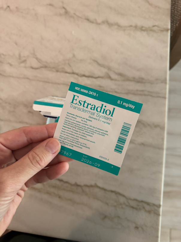 I’m currently using bioidentical hormone therapy, not synthetic. I wear an estradiol patch, which I switch out twice a week, and I take 300 mg of progesterone every night. Within about a week or so, my hot flashes started to subside and eventually, they completely stopped. Praise Jesus.